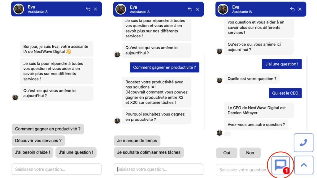 - Chatbot / Canal de Discussion sur votre Site Web :